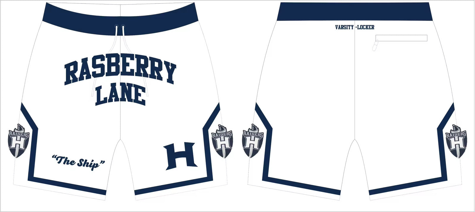 Step out with pride in the official Huntington High Athletic Shorts! Featuring bold “RASBERRY LANE” embroidery, vibrant school colors, and the iconic landmark better know as “The Ship" these shorts are built for comfort, performance, and Raider pride. Whether you're on the court, in the gym, or just repping the blue and white, these are a must-have for every true fan.